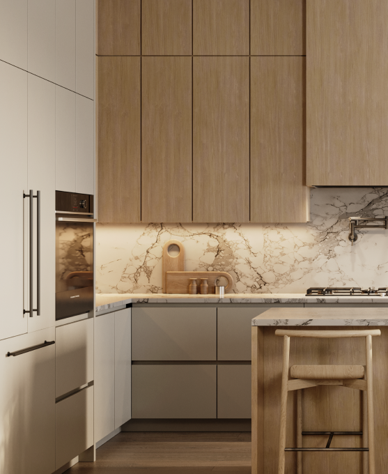 The living spaces invite ease and connection—with high ceilings, clean lines, and a palette inspired by natural light.